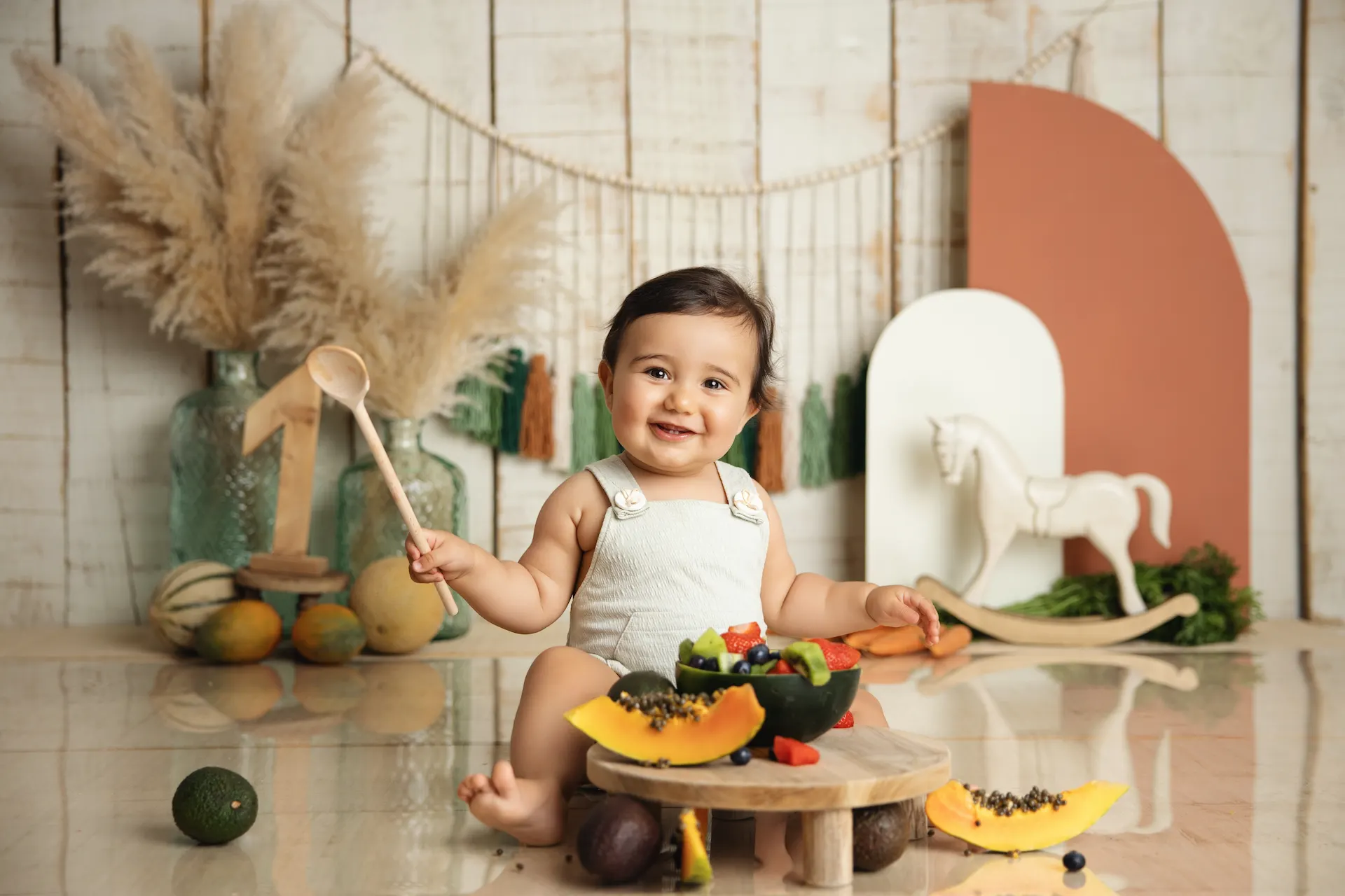 Si buscas un entorno íntimo y mágico, mis sesiones de fotos smash cake en el estudio ofrecen una experiencia única. Con decoraciones orgánicas inspiradas en la naturaleza, capturo la alegría desbordante de tu bebé mientras disfruta de su pastel. Cada imagen es una expresión artística que destaca la diversión de este momento especial.